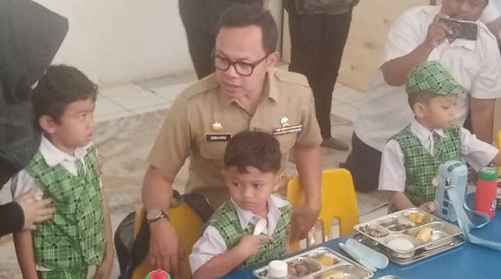 Wakil Menteri Dalam Negeri (Wamendagri) Bima Arya Sugiarto ikut meninjau langsung tahap pertama program Makan Bergizi Gratis di Sekolah Bosowa Bina Insani Bogor.