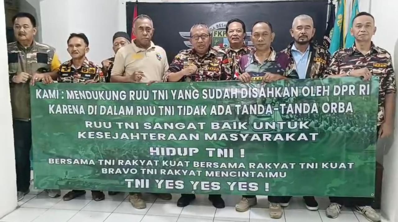 ” Kami KB FKPPI 10.05 Kota Bogor dengan ini mendukung RUU TNI yang sudah di sahkan oleh DPR RI, TNI tidak ada urusannya dengan orde baru, TNI bersama rakyat yang mendukung untuk kesejahteraan. TNI bersama rakyat kuat, hidup TNI, Bravo TNI,” tegas Bambang